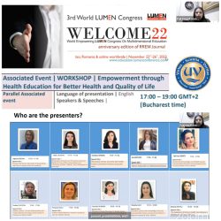 Organizim i Workshopit Ndërkombëtar në kuadër të World Empowering LUMEN Congress on Multidimensional Education WELCOME 22 November 22nd-26th, 2022 Iasi, Romania & online worldwide, në