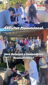 Këtij aktiviteti sensibilizues iu bashkuan edhe studentët e vitit të tretë Infermier i Përgjithshëm të Fakultetit të Shëndetit. Ky aktivitet u realizua në trajtën e një marshimi sensibilizues, me nisje nga Fakulteti i Shëndetit drejt Gjimnazit “Ali Demi” dhe synoi rritjen e ndërgjegjësimit të komunitetit përmes edukimit shëndetësor në lidhje me rëndësinë e aktivitetit fizik i cili mund të zvogëlojë dhimbjen dhe të përmirësojë funksionin, disponimin dhe cilësinë e jetës për të rriturit me artrit.