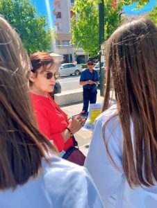 Aktiviteti më pas u vendos tek sheshet “Petro Marko dhe Tre Rracat” ku anëtarët e grupit të punës së bashku me studentët, ofruan për komunitetin, këshilla shëndetësore dhe shpërndanë kapele sportive, çadra dielli me logo UV për mbrojtjen nga rrezet e diellit.